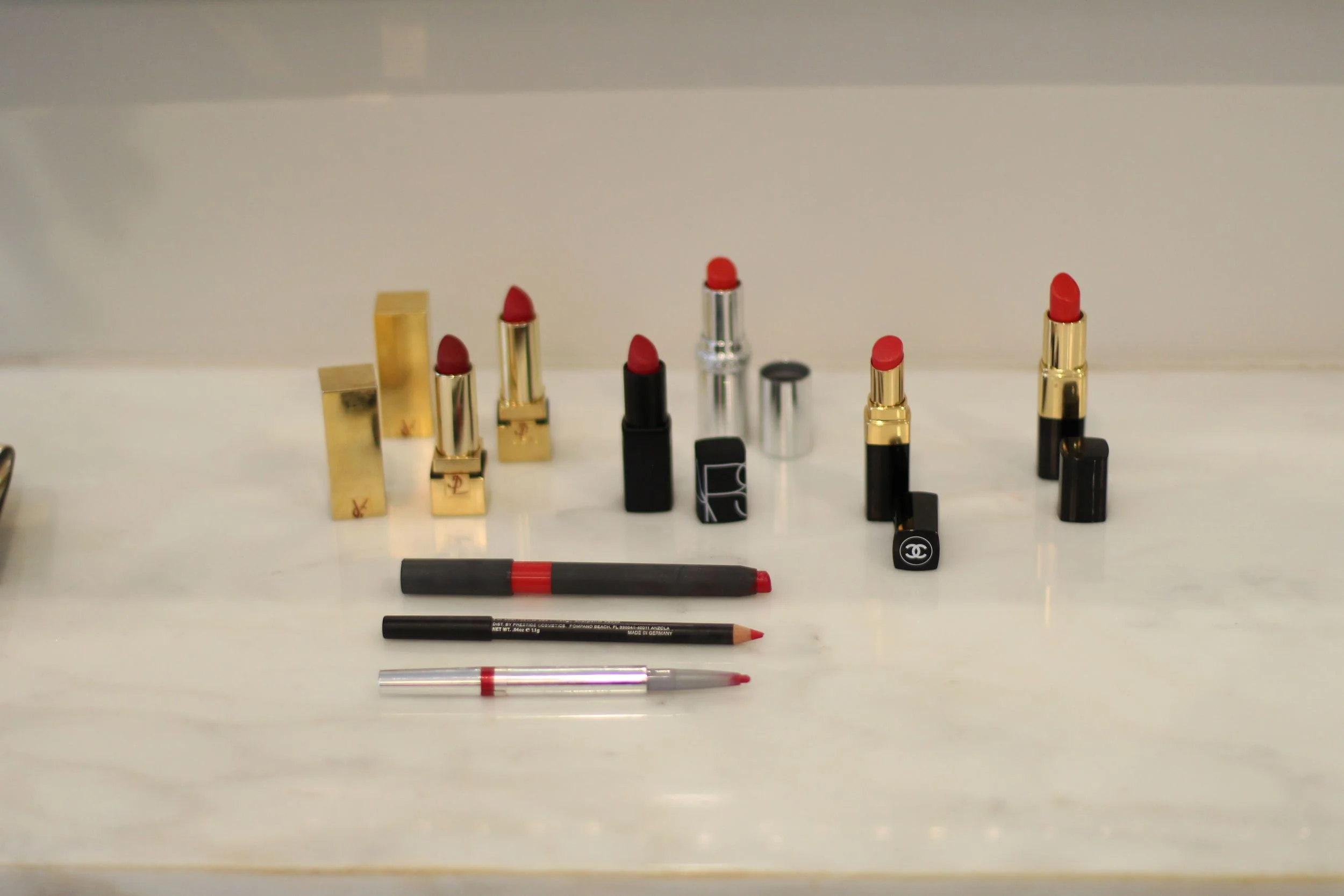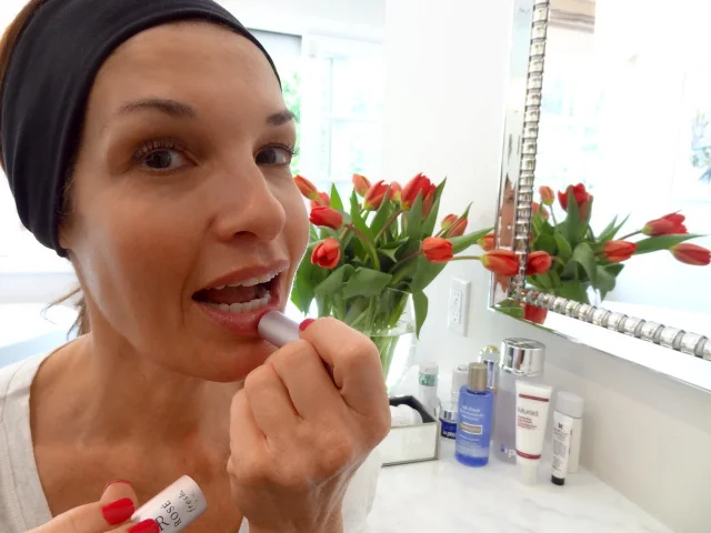 We are often advised not to wear red lipstick after a certain age, because it ages us. We are told to stick with light pinks, corals, and nude glosses, because they soften our look. I say phooey, that is a lot of hooey! I will admit that not every red is right for every woman, and even though some claim that there is a “universal” red, I disagree. All of us have a skin undertone of either blue or yellow. I was taught to look at the inside of my wrist to determine the color of my undertone. Mine is yellow, and my daughter’s is blue. My red lipsticks have more orange tones and hers have more blue in them.
