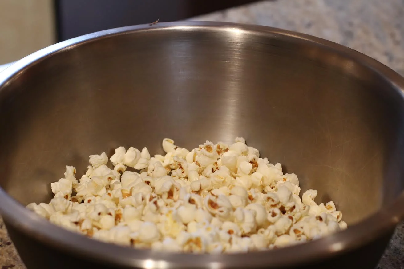 Pour the oil over the bottom of a large saucepan that has a lid, and add the popcorn kernels, shimmying the pan around so the kernels land in one layer. Cover the pot, heat it over medium-high heat, and, once the kernels begin to pop, keep the saucepan moving until all of the kernels have popped, about 5-7 minutes total. Toss the salt and then the melted butter over the popcorn, and then transfer it to a bowl, so that you can fish out any of the un-popped kernels. You should have about 4 to 4 ½ cups popcorn. Let cool.