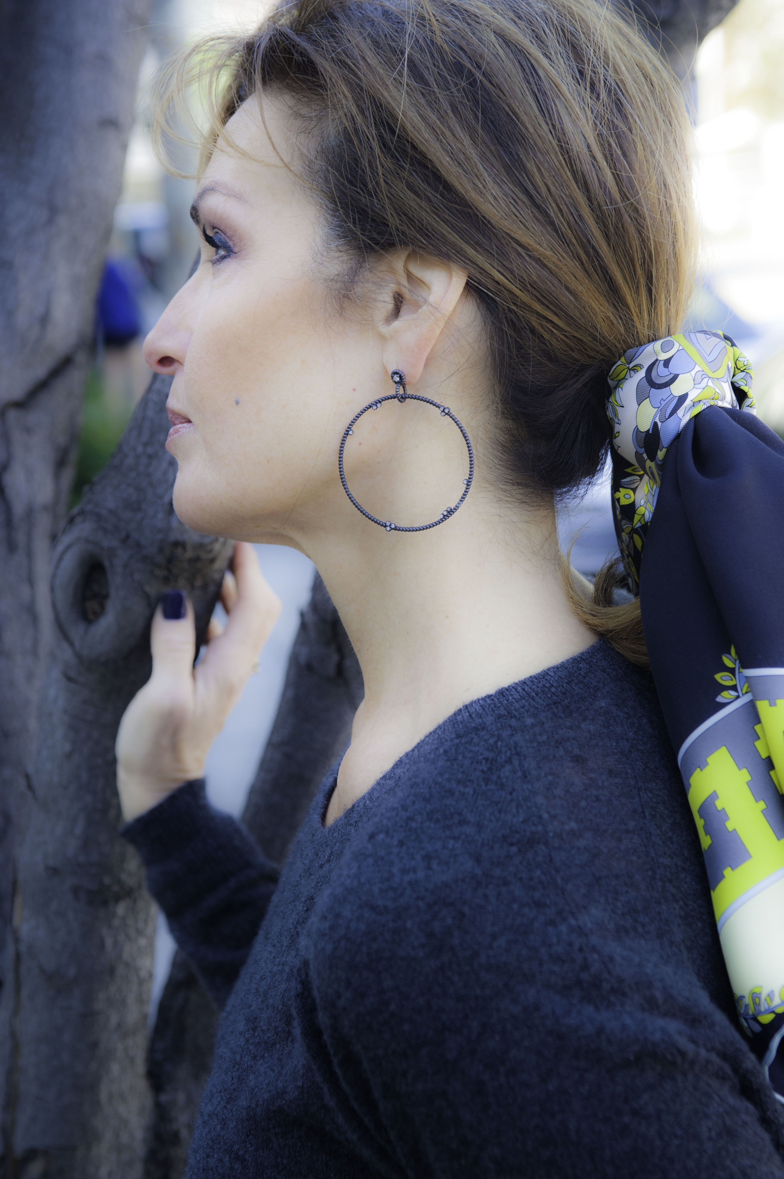 /Zara Blazer, Giorgio Brato Vest, Satari Scarf, Rich and Skinny Jeans, Gianvito Rossi Booties, Balenciaga Handbag, Oliver Peoples Sunglasses, Robin Terman Earrings.
