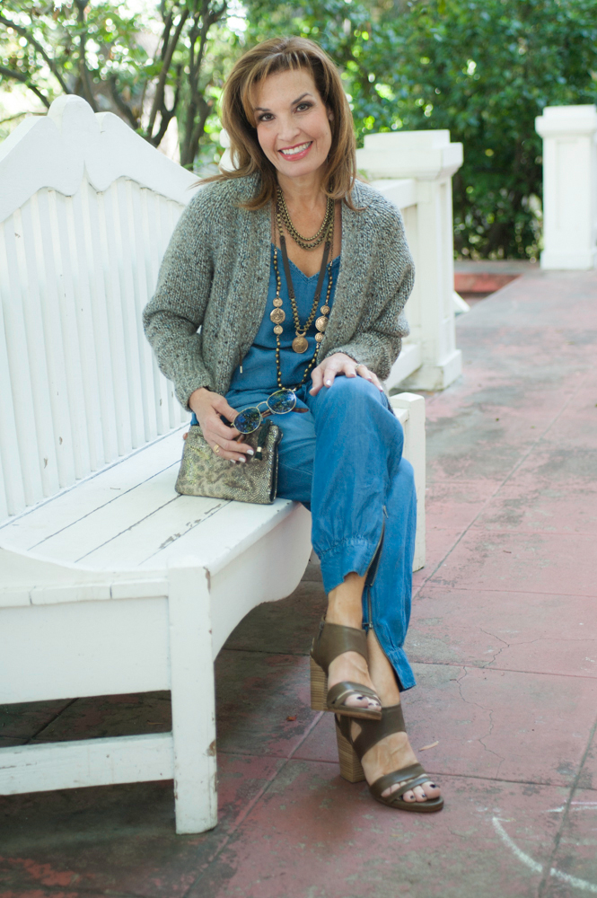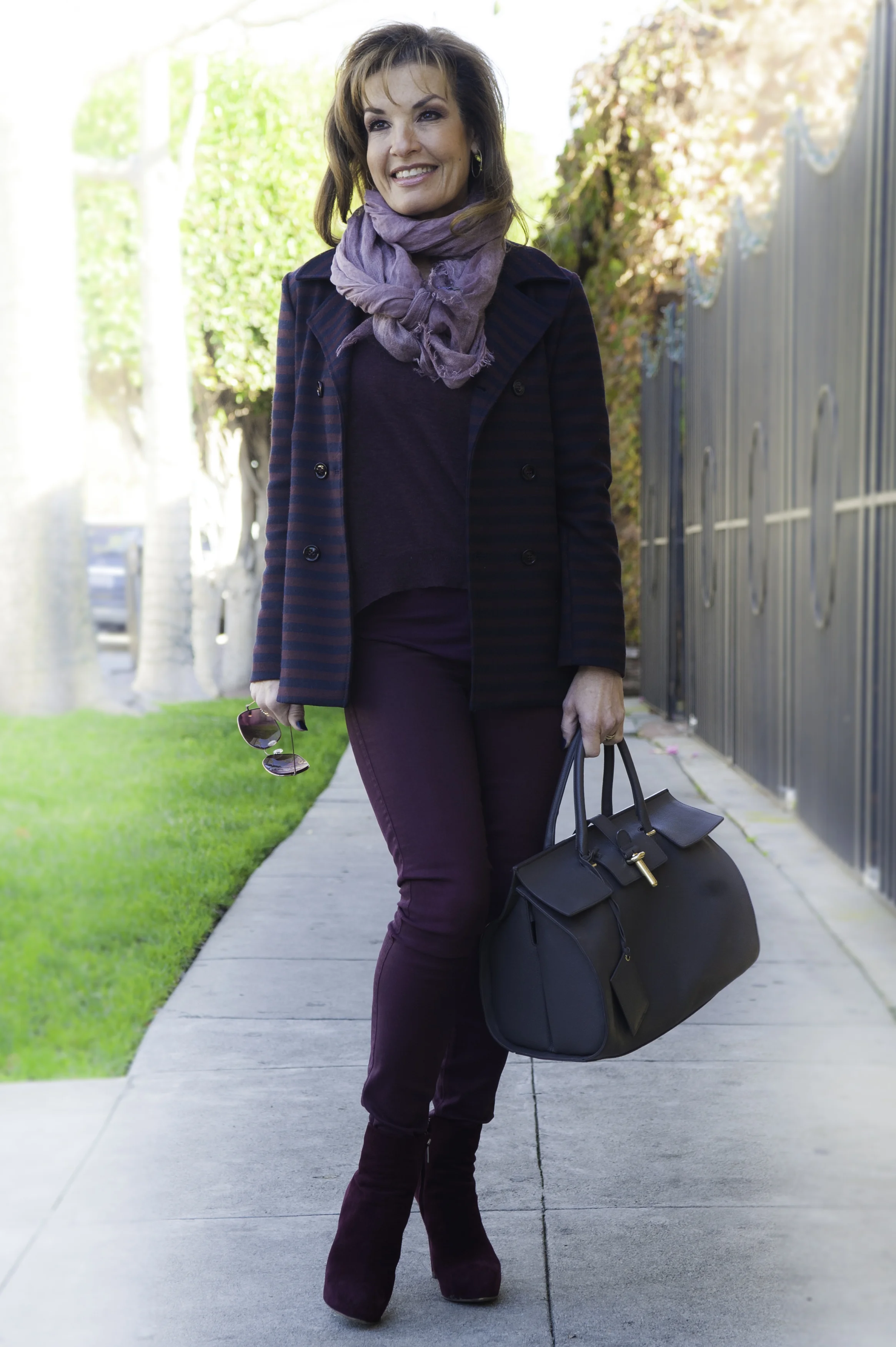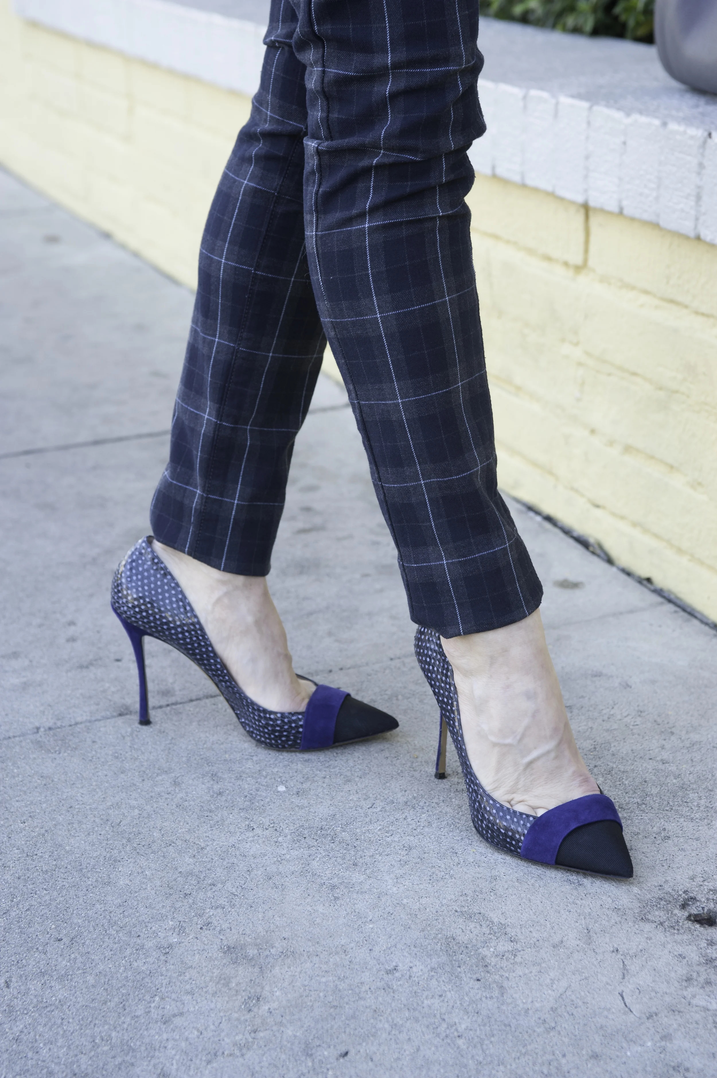 When it comes to the Southern California climate, what you wear during the early hours of the morning, usually gets peeled off by mid day, only to get layered back on during the evening. Here is one of my tried and true uniforms: a tank top underneath a light pullover, always a scarf for warmth, pants and boots. This time I added a blazer from Zara and a fur lined vest scored on sale at Savannah! This is another example of high-low dressing.